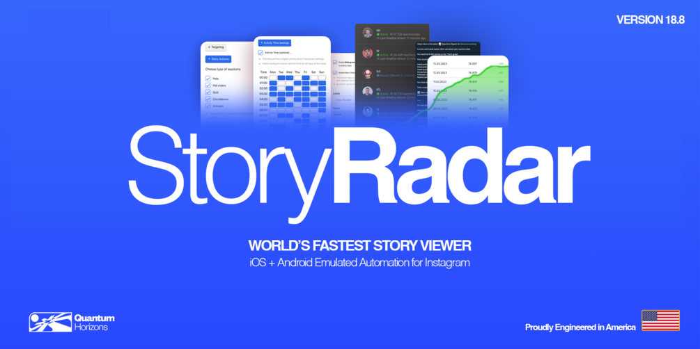 Results shown are based on a pool of 2891 clients that had at least 30 days of stats tracking. StoryRadar results are not guaranteed. Using software in high-risk automations can result in restrictions, please follow our safety guide before using StoryRadar. We are not responsible for misconfigurations or user errors that may result in issues with your profiles. If you have questions please ask our Support team for help. If you are using other similar services or software with your attached profiles, you are not eligible for StoryRadar and must terminate those programs before using this software. Tropica Marketing LLC does not make any assurances on increased revenue, lead generation or account growth as StoryRadar is a self-serve software, all results are the by-product of client inputs through software configuration, profile quality and content output. You must agree to our Terms of Service before using.